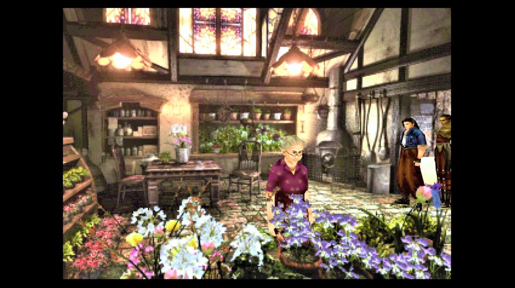 Screenshot of The Flower Shop in Winhill.. One of my favorite towns in FFVIII. Dreamy Cottagecore vibes…♥