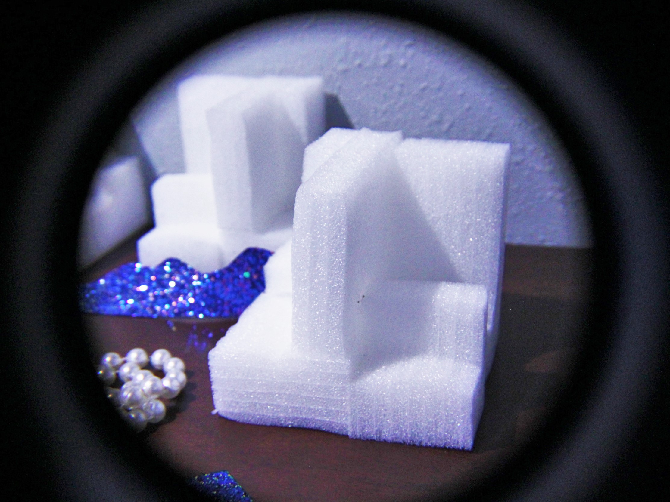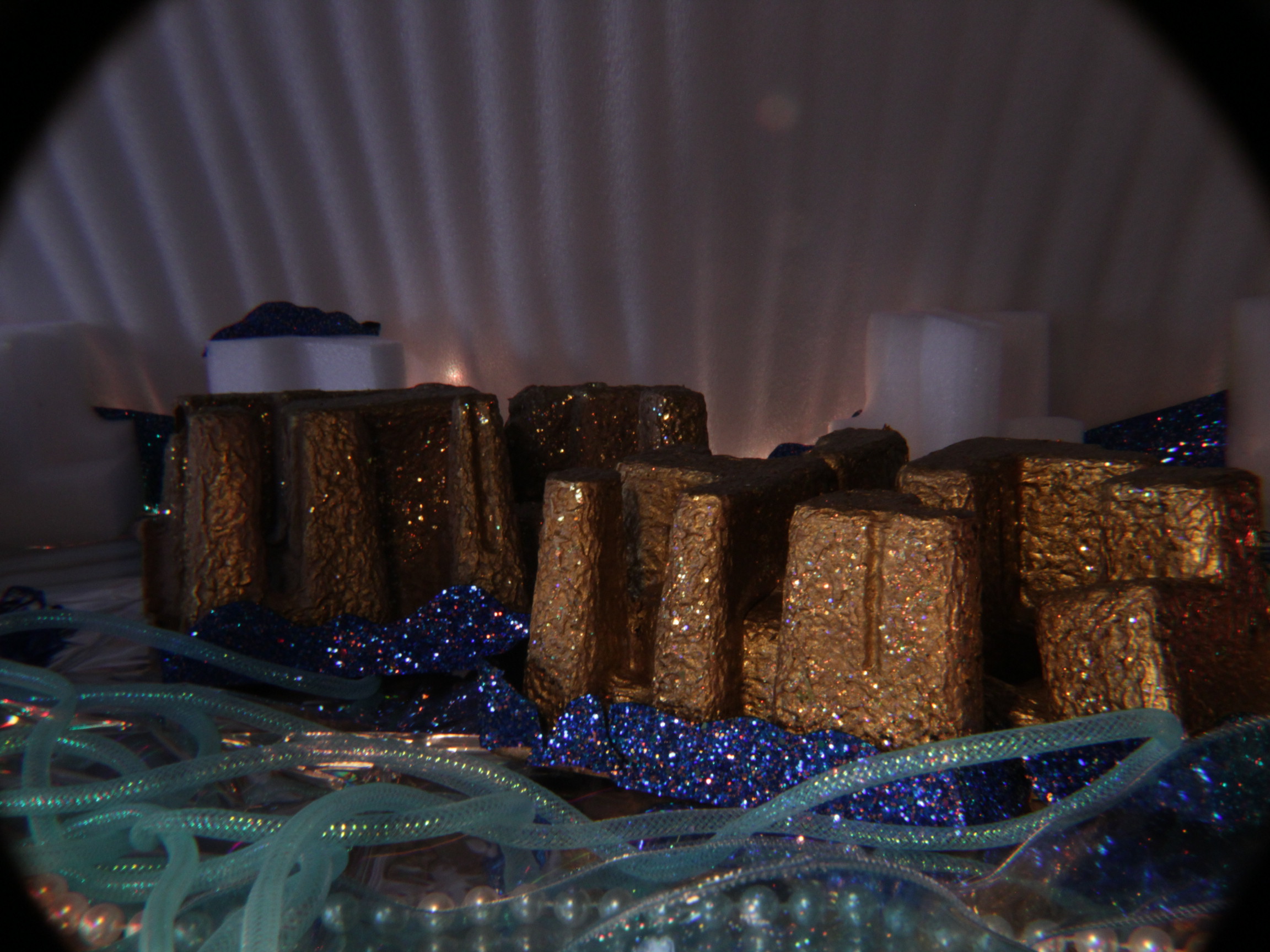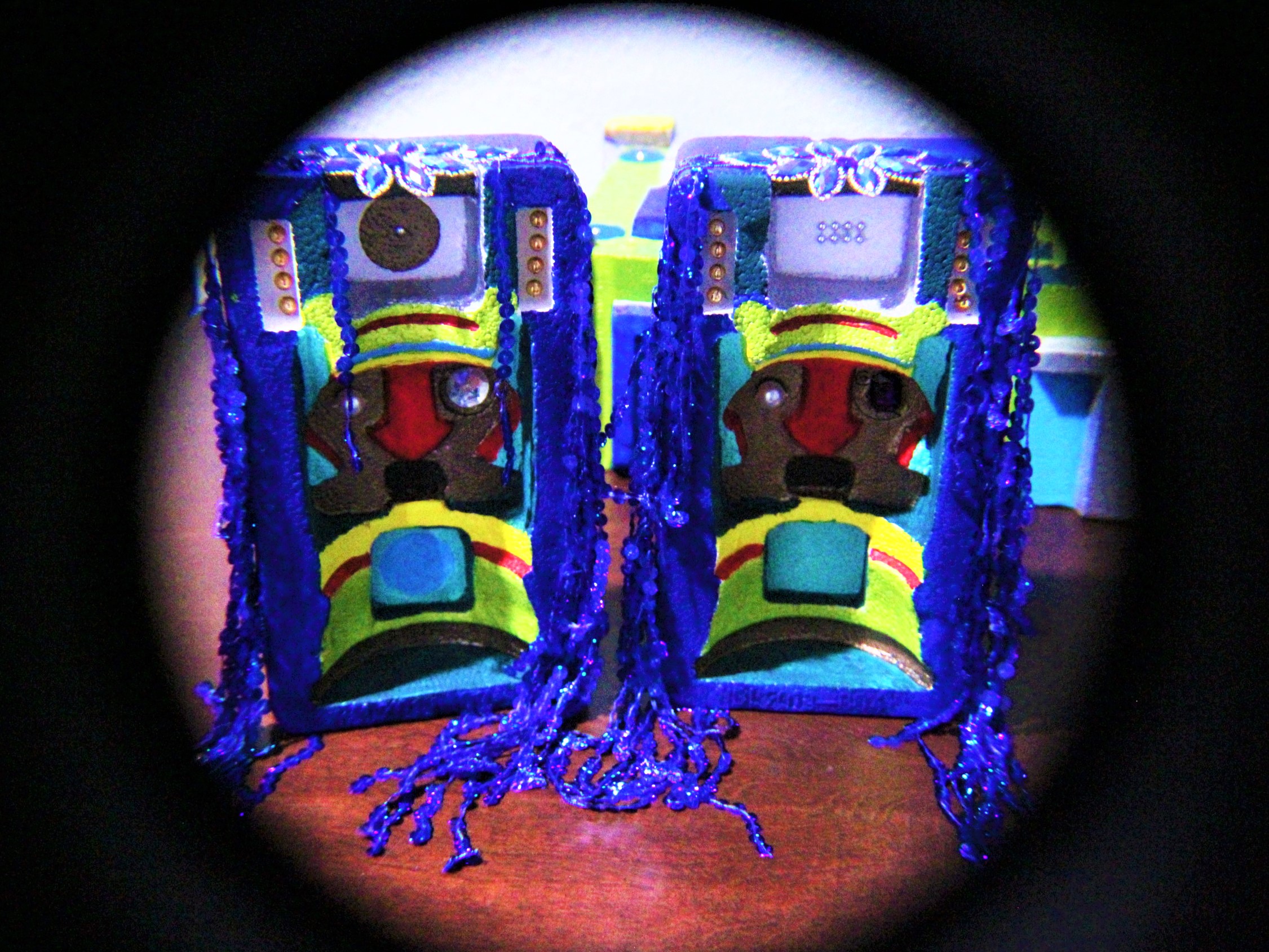 I enjoy making these stories out of as many “recyclable” materials as possible. Plastic and Styrofoam are some of my favorite materials to use, especially since they come in so many different shapes, sizes, forms, textures, sheers, and colors. Acrylics, polishes, and strategic embellishment can easily transform these materials into imaginative works of art. I find that the end results are as glamourous as I want them to be! 🌎